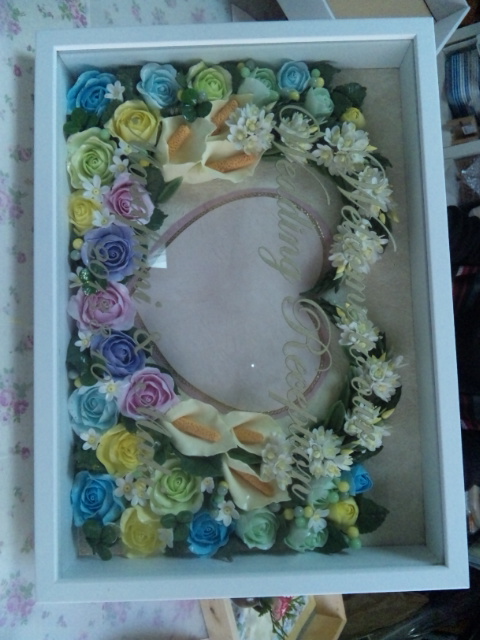 真ん中のハートの部分に 前撮りの写真を入れるそうです。