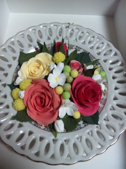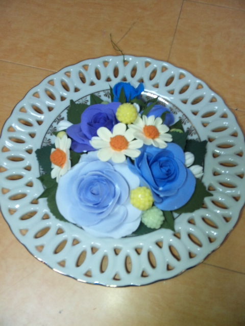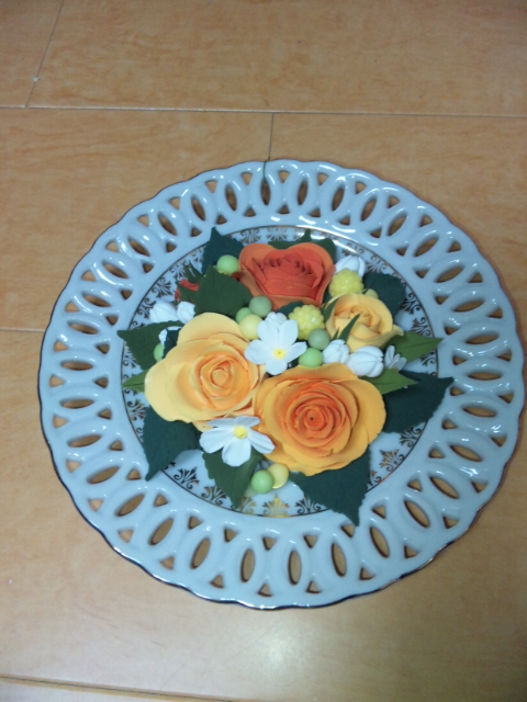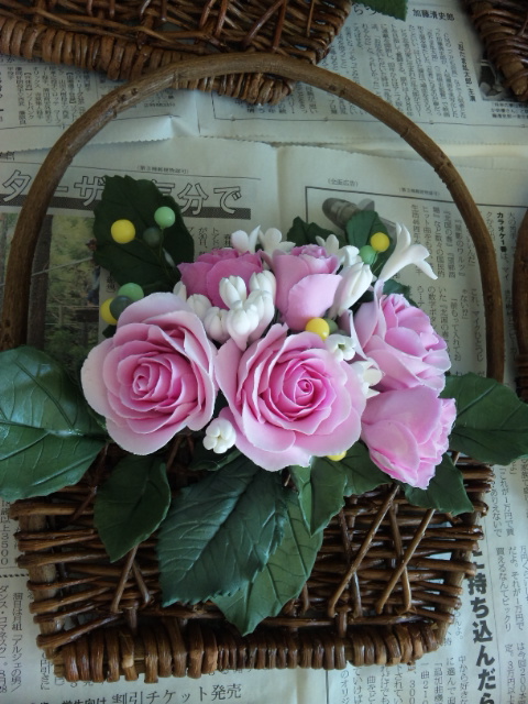 ↓は 今日のメインのバラの花を作りはじめたところです。
