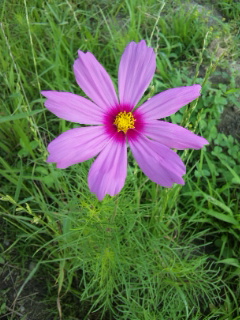 畑の横のあぜ道に 早くもコスモスが咲いていました。