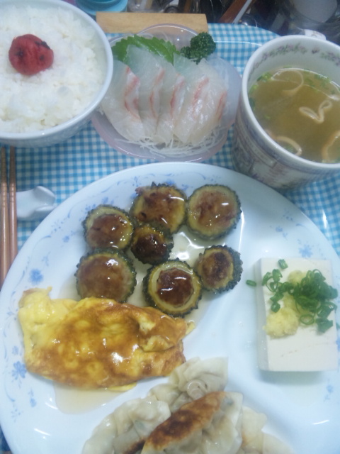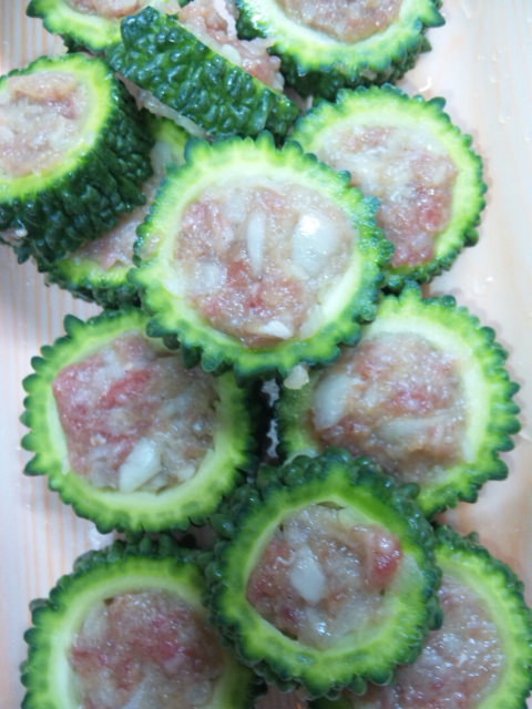 ゴーヤの肉詰めにしました。
