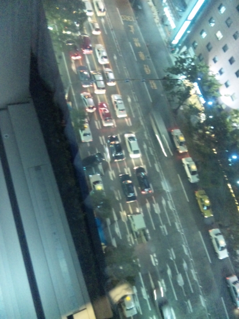 博多の駅前通りなので 窓の下は このとおり 車がいっぱい。