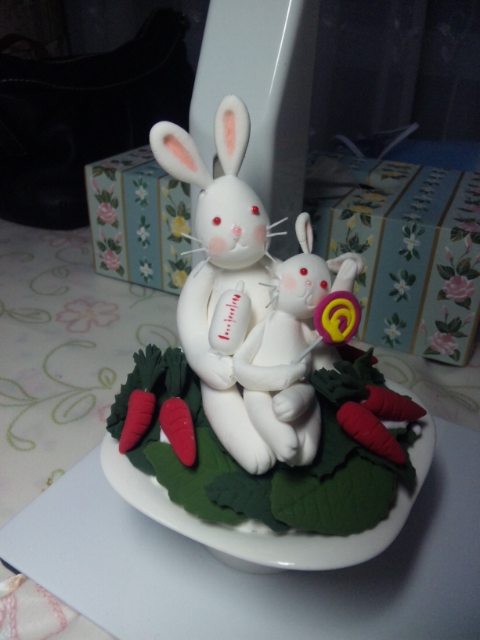 ↓ F さんの作品 (ミルクよりキャンデーを欲しがる子ウサギ)